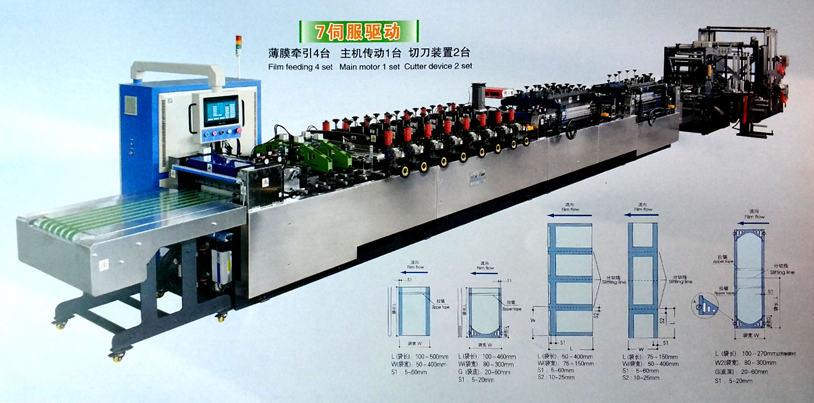 三边封、站立袋、拉链袋、无接缝站立拉链袋高速全自动制袋机